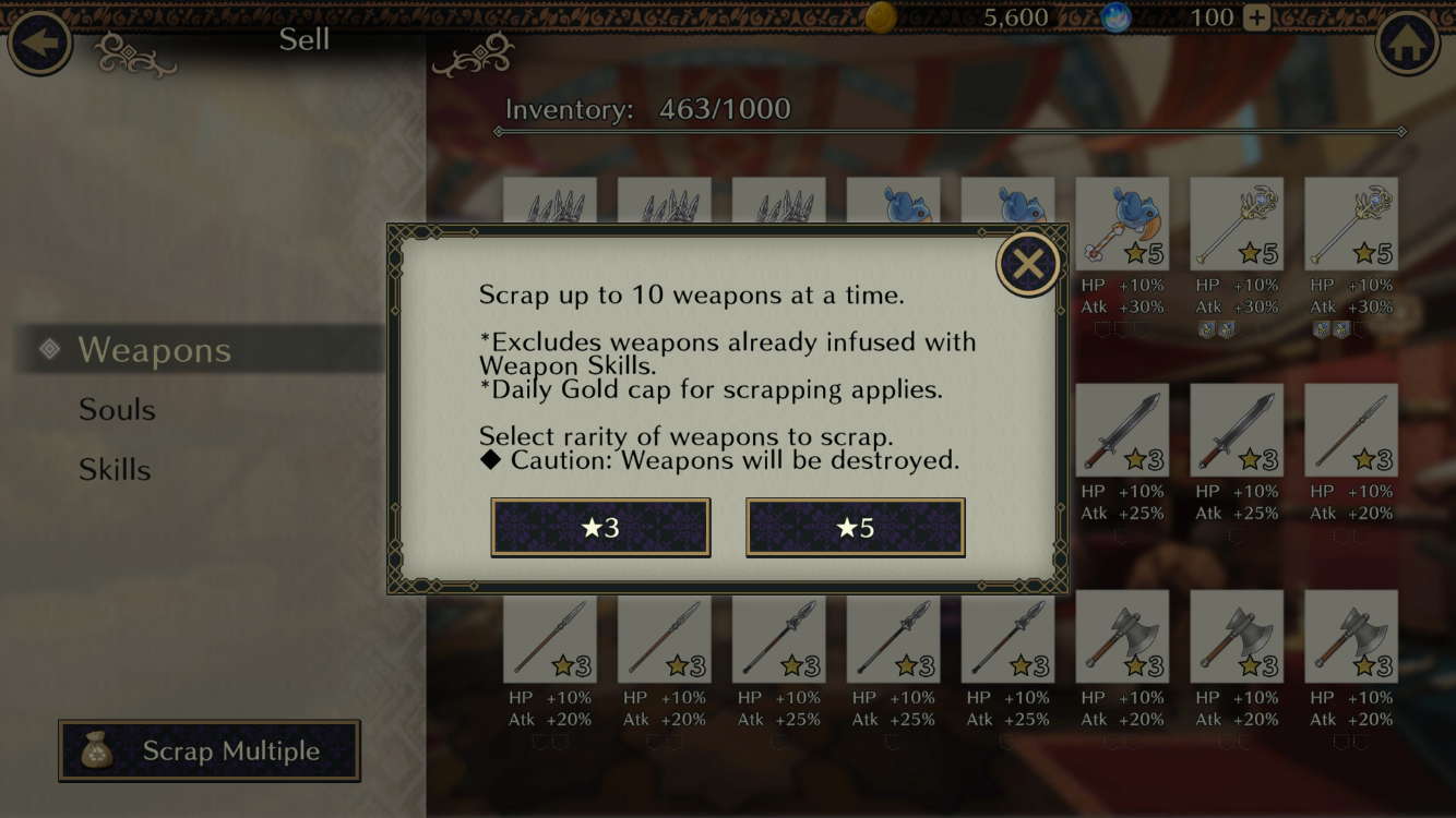 When using Scrap Multiple, you can select ★3 or ★5 weapons.