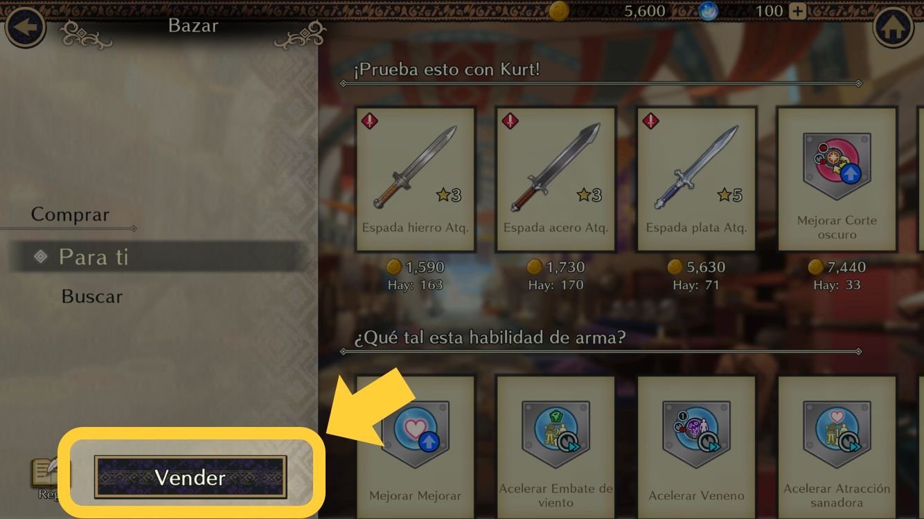 1. Entra en el bazar > toca "Vender"