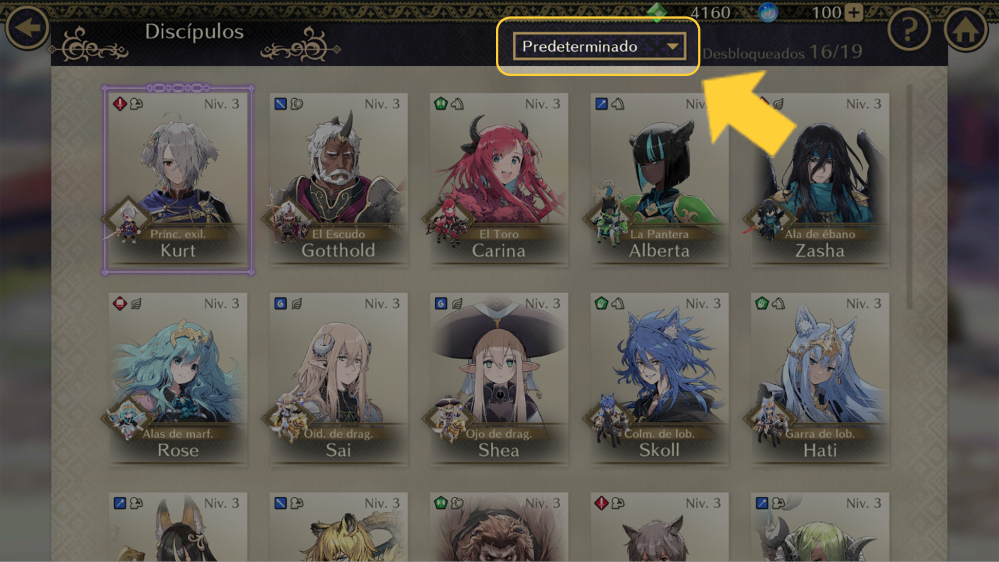 ・En la pantalla "Discípulos", se mantendrá la posición a la que el jugador se había desplazado, incluso si cambia de pantalla. *Se restablecerá cuando se reinicie la aplicación.