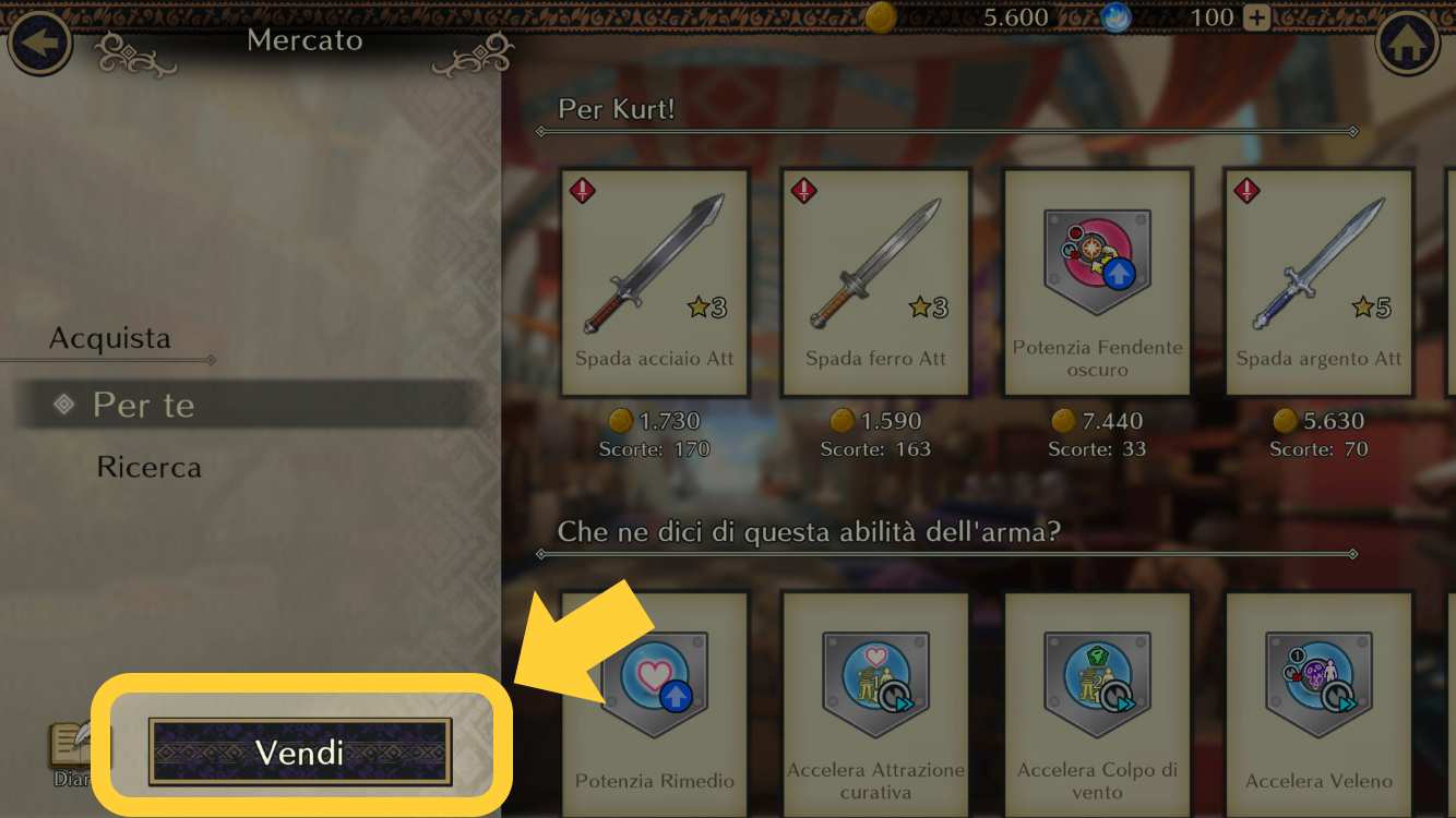 1. Seleziona Mercato > Vendi