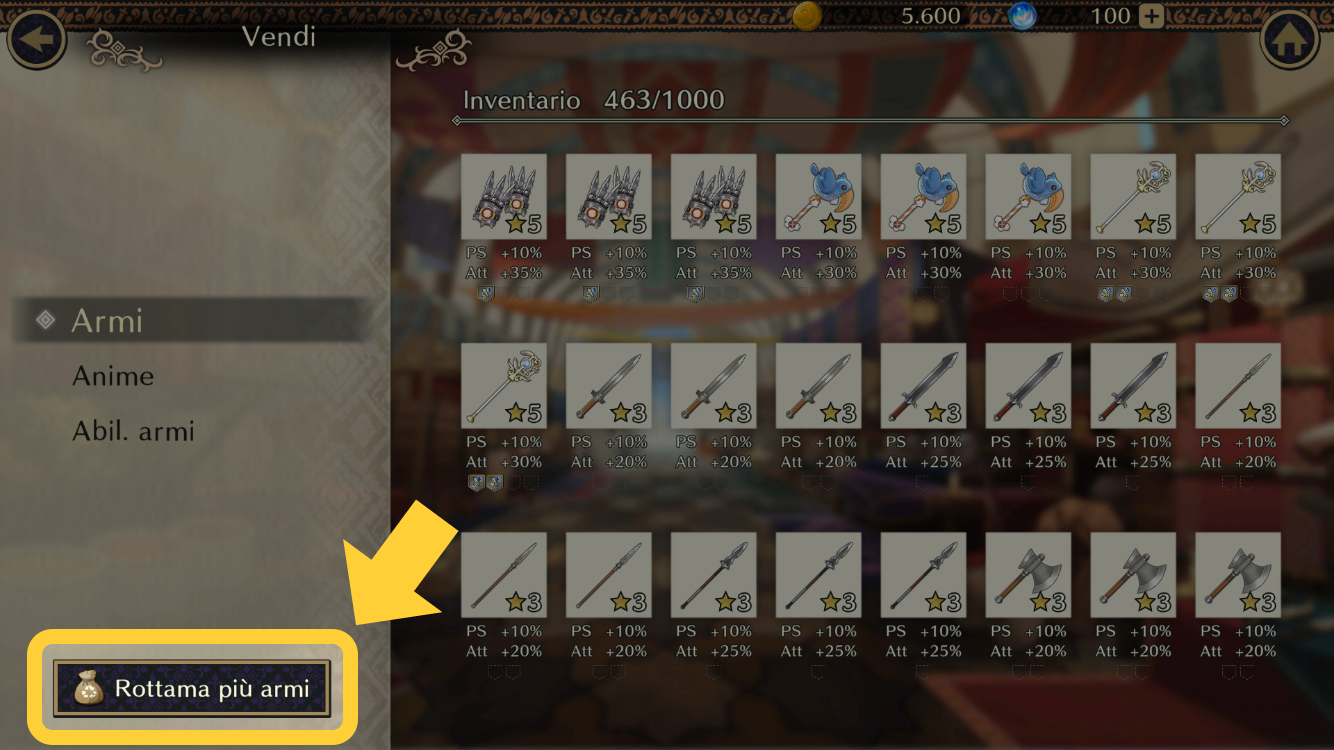 4. Seleziona le armi da 3 ★ o 5 ★ dal menu a comparsa per rottamarle