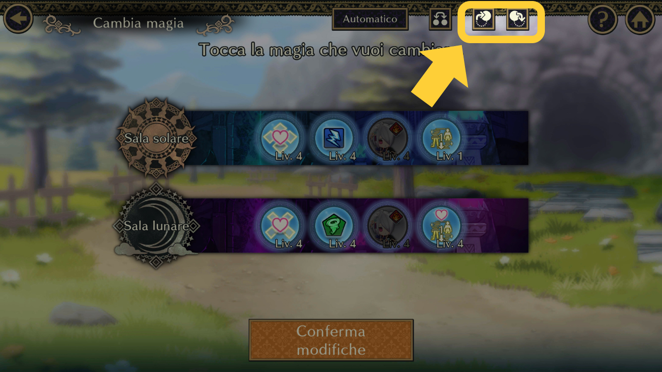 Sono stati aggiunti due pulsanti allo schermo Cambia magia.