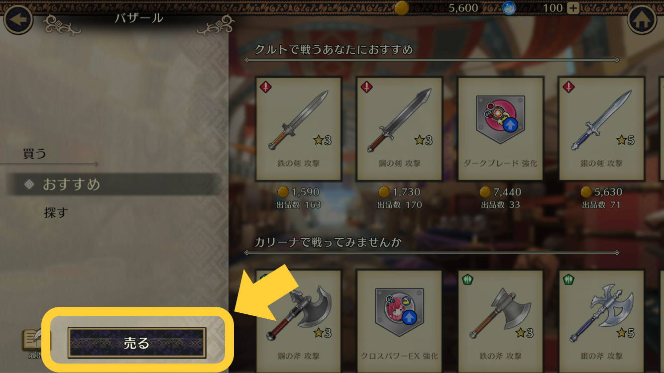 バザールにて武器の「まとめて資源回収」が行えるようになりました。