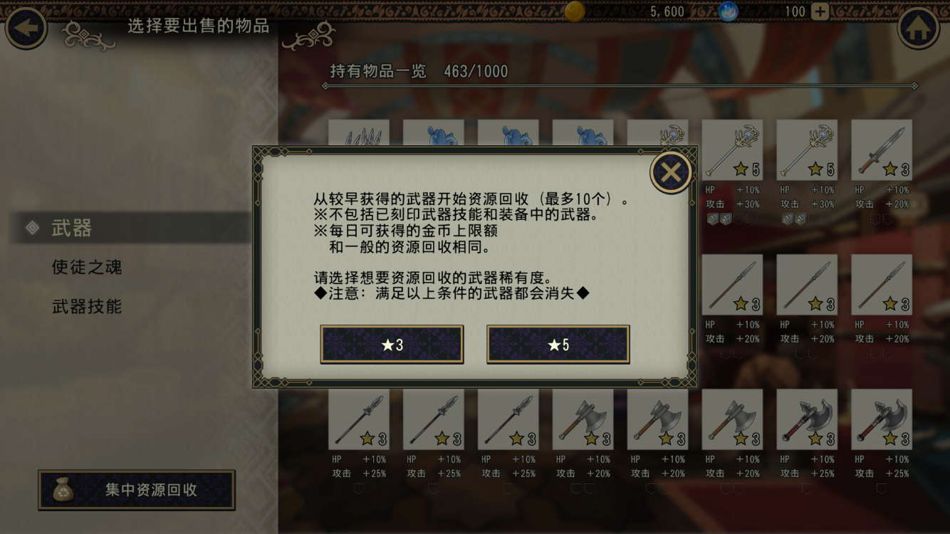 此外,回收武器的稀有度可从★3、★5中任意选择。
