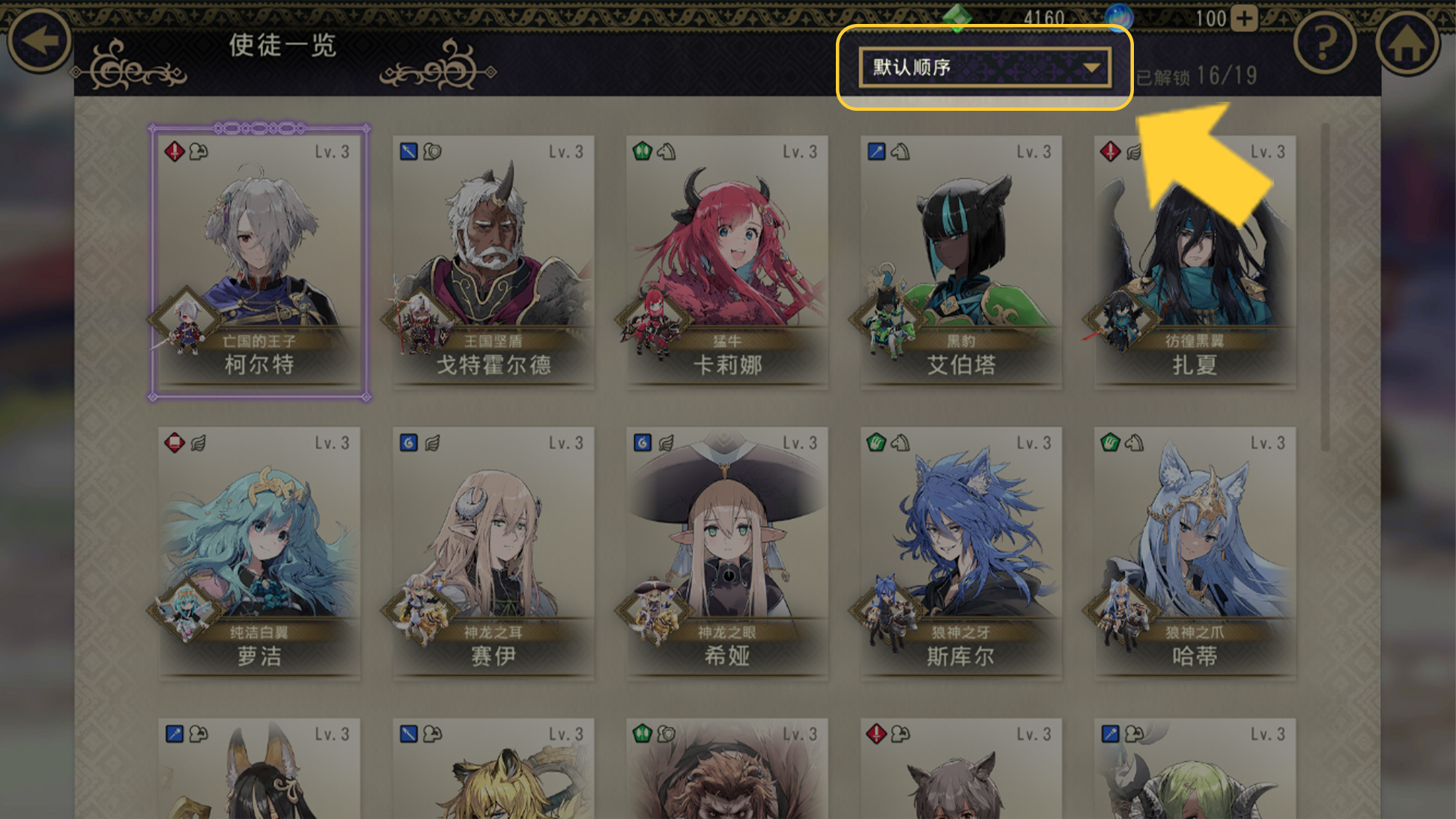新增使徒一览的排序方式